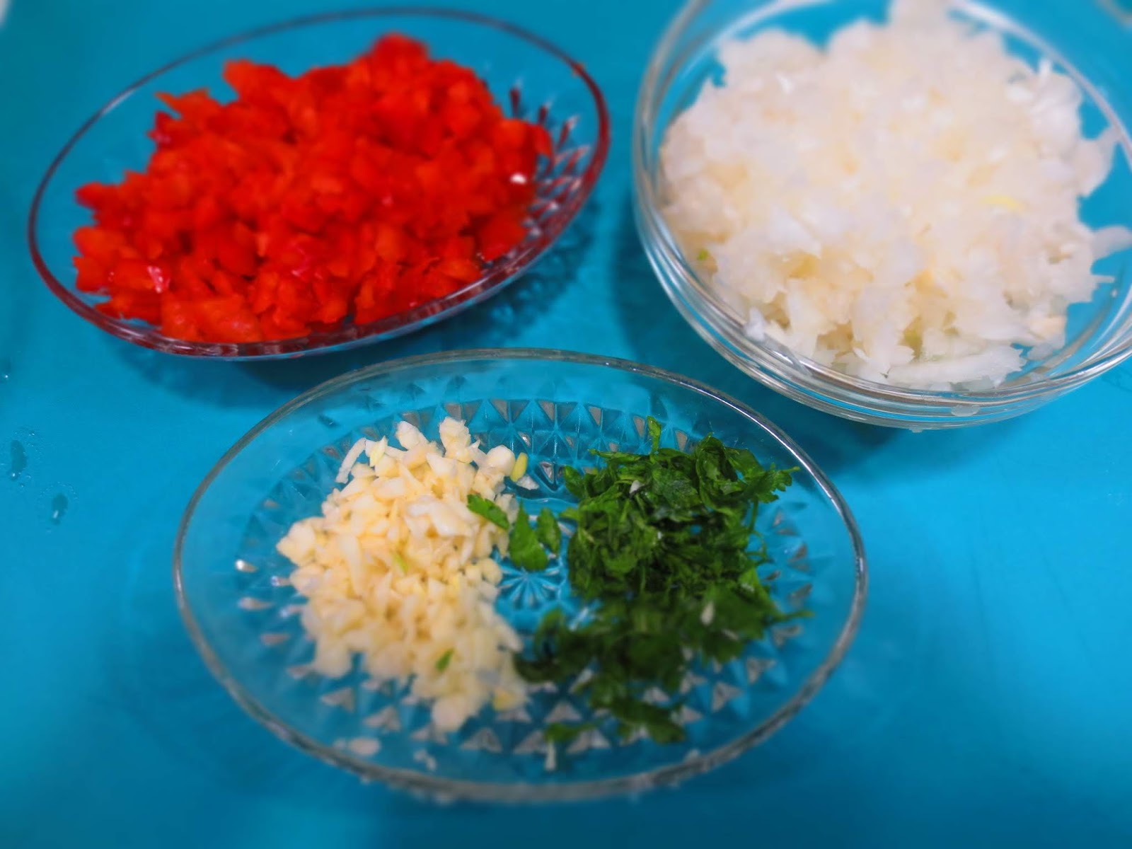 - Picamos la cebolla, el pimiento, los ajos y el perejil.